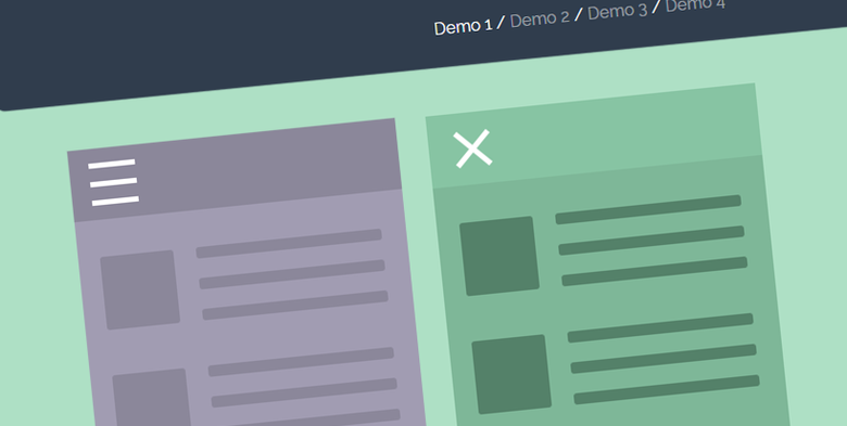 Alle 4 Animation benötigen Javascript nur, um eine Klasse zu setzen, die dann wiederum eine CSS3 Animation auslöst. Somit gehen die Animation in beide Richtungen, also beim Schließen und beim Öffnen.