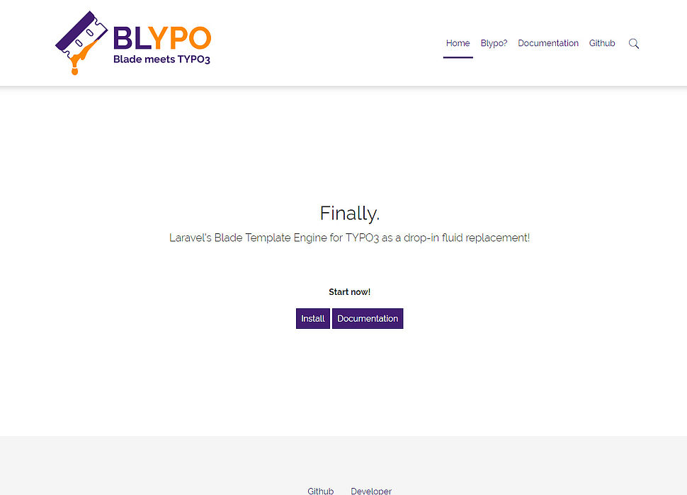 Für das Blypo-Projekt (Blade und TYPO3), dass Martin Tillmann und ich erstellt haben, habe ich die Webseite auf TYPO3 und Blypo-Basis umgesetzt. Die Seite sollte nur die wichtigsten Punkte nennen, einen Usecase für Blypo darstellen und die Dokumentation beinhalten.