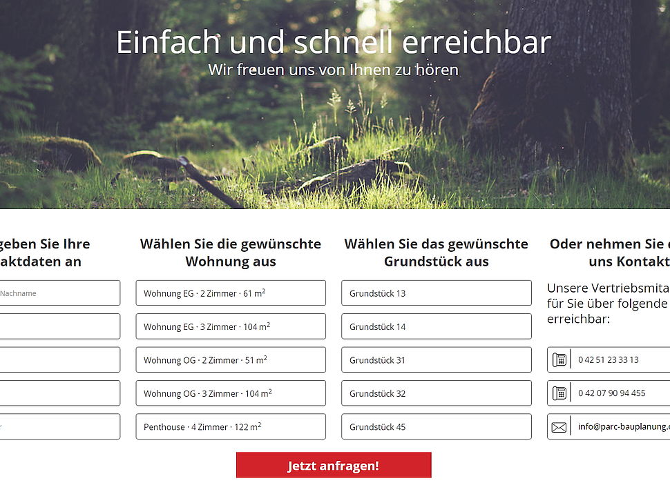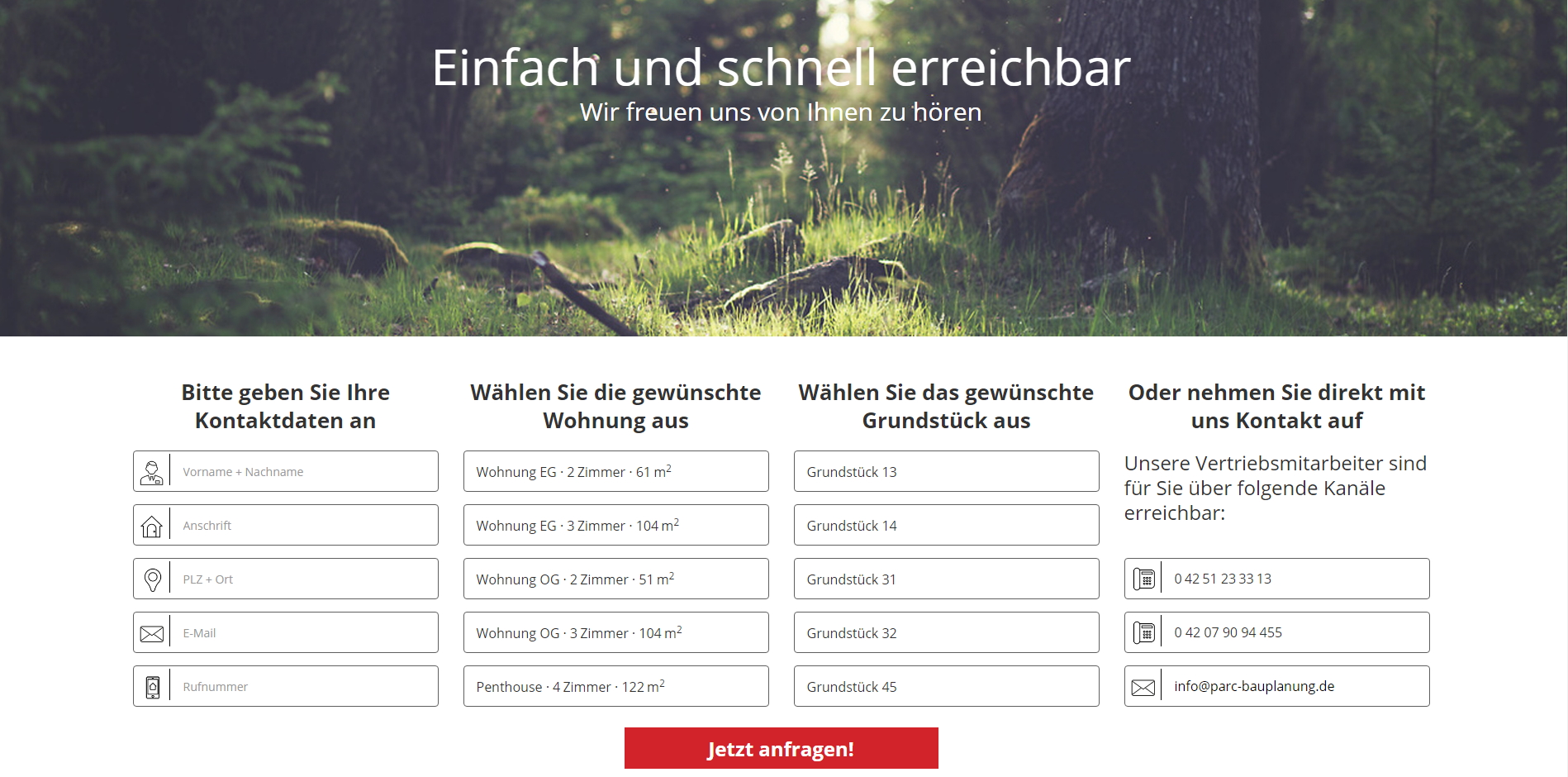 Das Kontaktformular wird aus den Auswahlen aus den interaktiven Bildern vorausgefüllt im die Kontaktaufnahme zu vereinfachen.