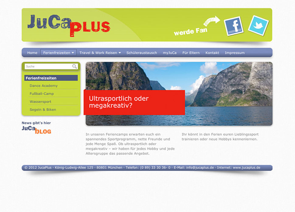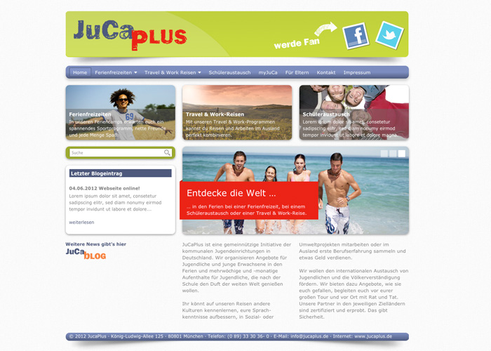 „JuCaPlus“ betreibt Ferien- und Jugendcamps in der ganzen Welt und möchte mit seinem Internetauftritt jungen Menschen Lust machen die Welt zu entdecken und sich zu orientieren.