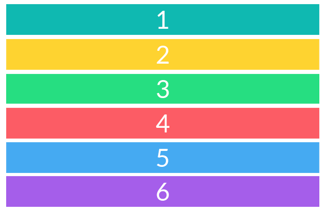 }Haben wir das getan, ändert sich im Frontend nicht viel, da wir noch nicht definiert haben, wie unser Grid aussehen soll. Gerade werden die 6 div's einfach untereinander angezeigt.