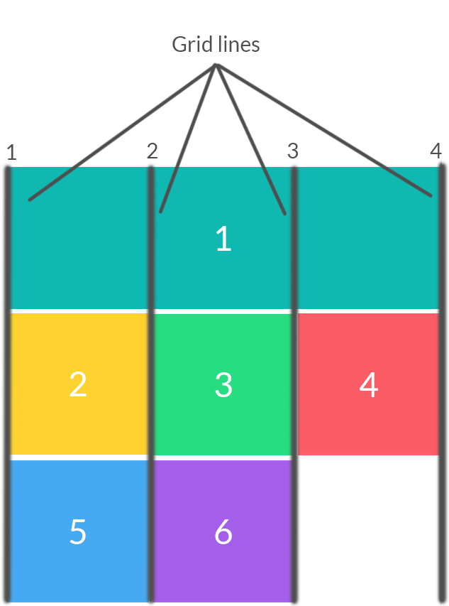 }Was wir mit diesem CSS sagen ist, dass das erste Element in der ersten Grid-Linie starten soll und der vierten enden soll, also die komplette obere Zeile einnimmt. So würde es jetzt aussehen: